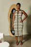 Sculpted silhouettes in ribbed knits meet fluid printed mesh and tailored forms