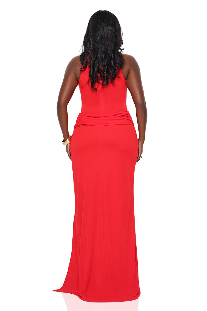 Aura High Slit Maxi Dress (Red)