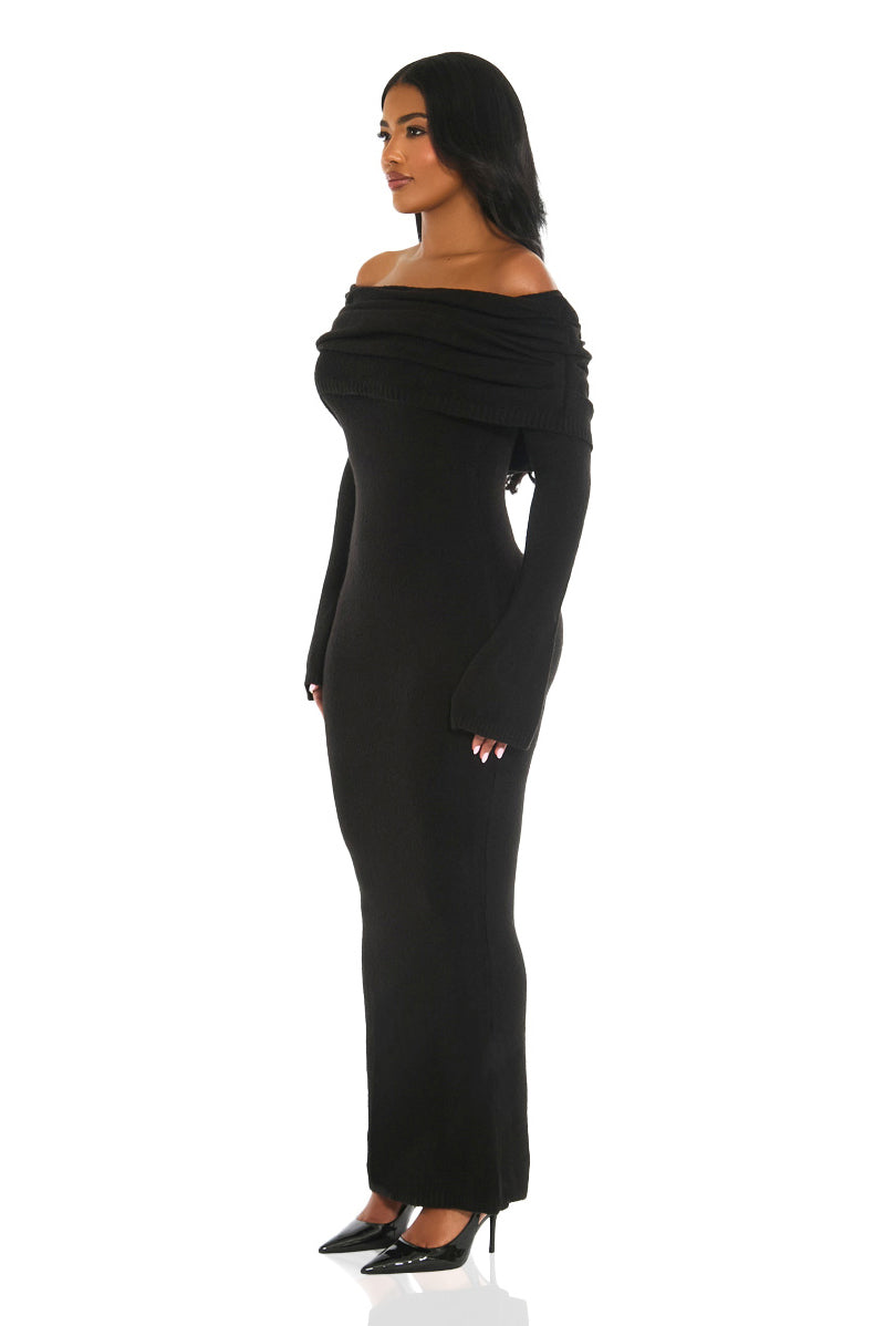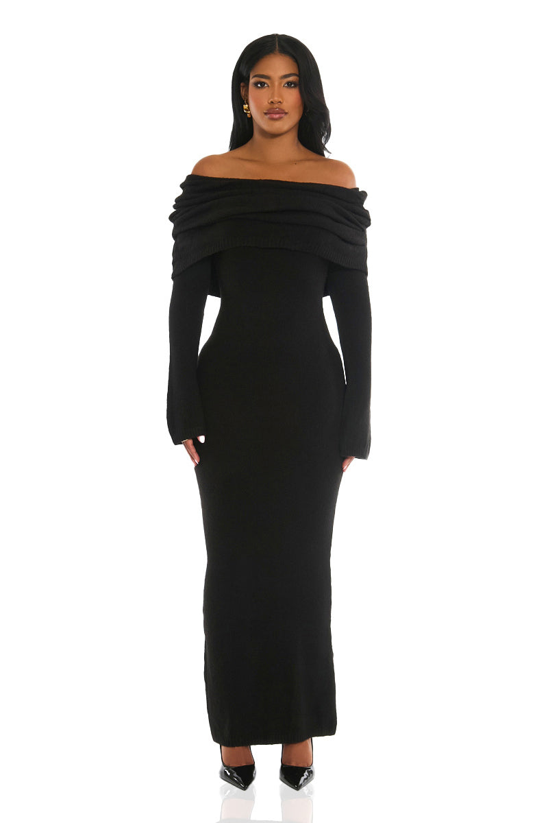 Her Moment Off Shoulder Knit Maxi Dress (Black)