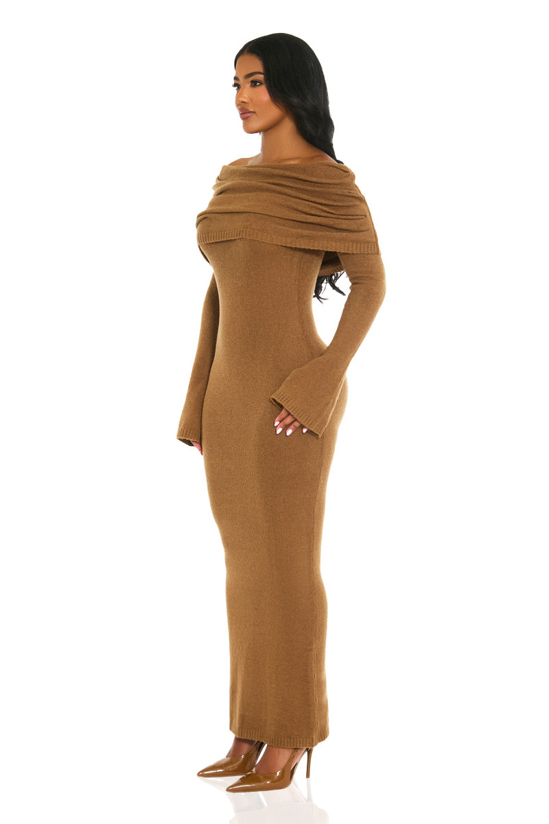 Her Moment Off Shoulder Knit Maxi Dress (Mocha)