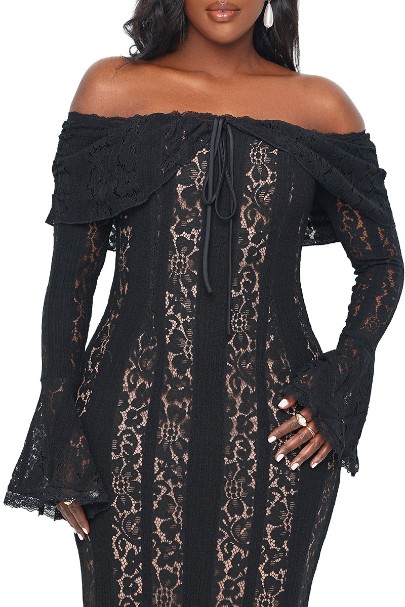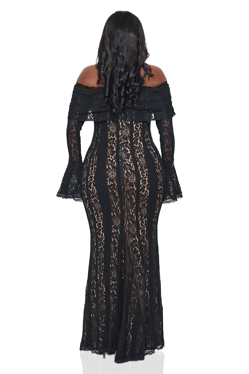 This off-shoulder maxi dress strikes the perfect balance between timeless style and modern comfort. Fully lined construction ensures complete coverage while the superior stretch fabric adapts to your body for a custom fit. The rear zipper closure provides a clean, streamlined look from every angle.