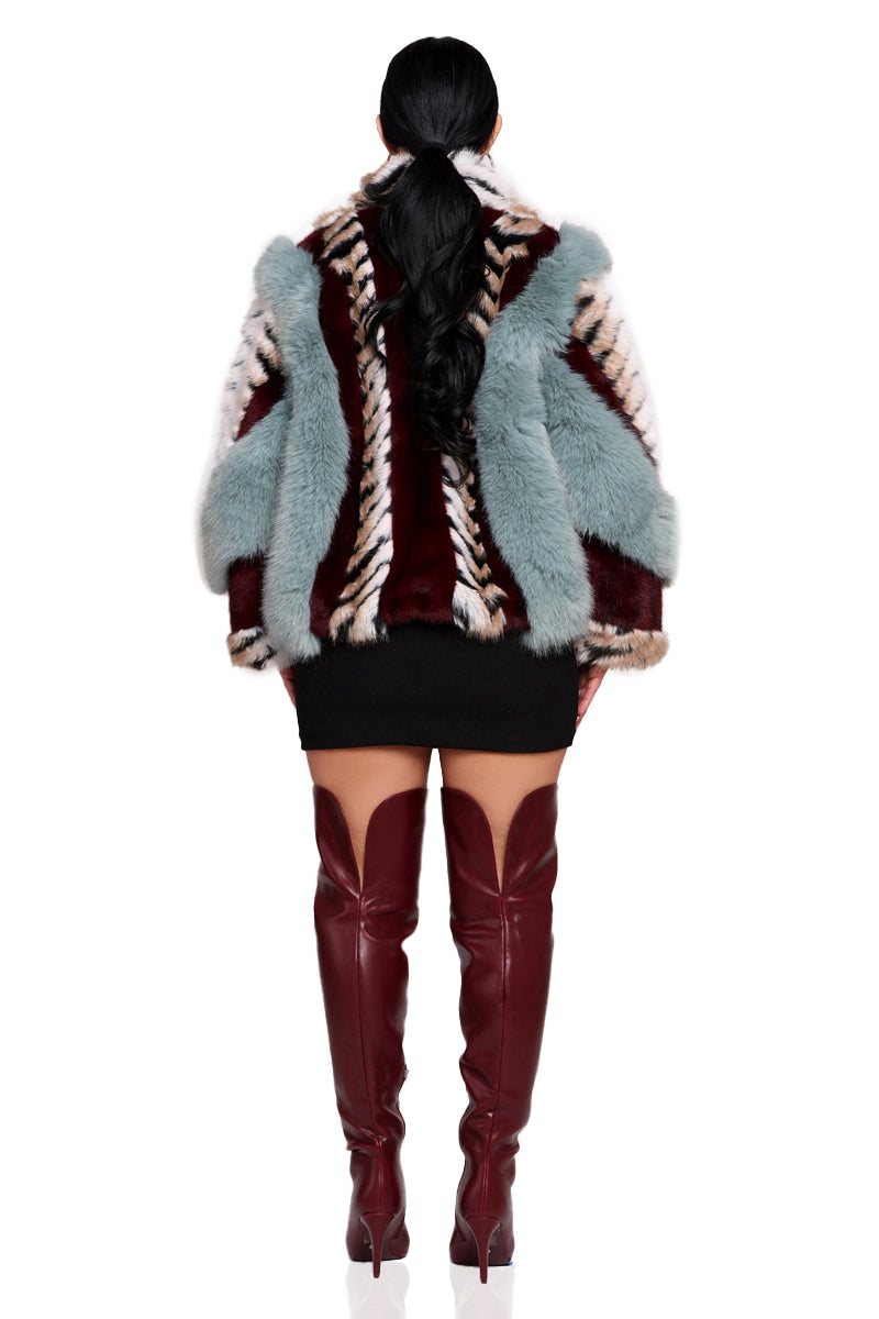 Make a bold impression with the Maison Statement Coat, featuring vibrant multi-color panels that elevate any outfit. Designed with an adjustable waist, this coat offers a flattering fit tailored to your shape. Practical front zipper closure and roomy pockets provide convenience without sacrificing style. Perfect for turning heads while staying comfortable and confident wherever you go.