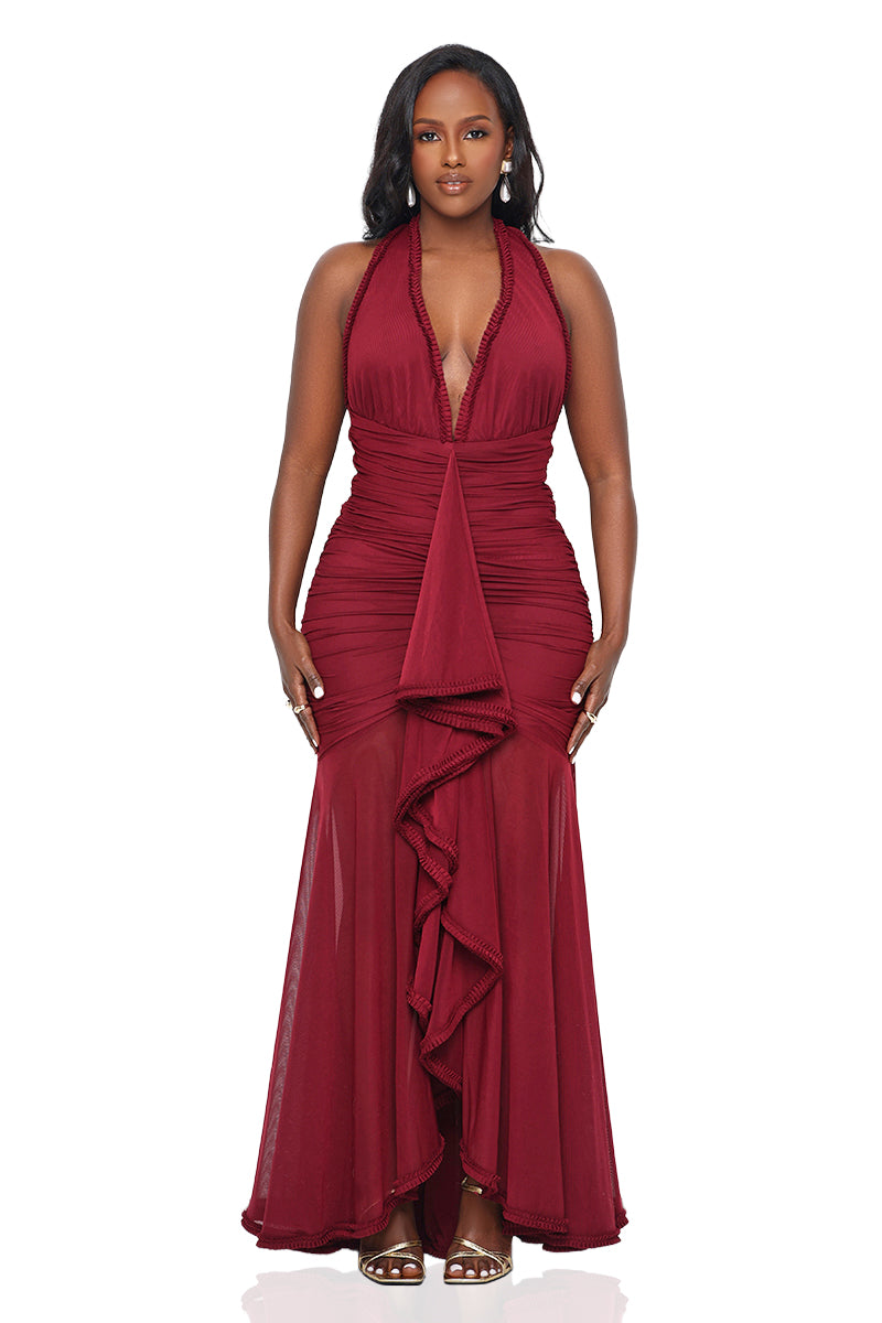 Elevate your evening look with the Marley Halter Dress in rich burgundy. This sophisticated piece features a flattering halter neckline that commands attention while the fully lined construction ensures comfort and confidence all night long. Perfect for cocktail events, date nights, or any occasion calling for understated elegance. The deep burgundy hue pairs effortlessly with statement jewelry and heels for a polished, head-turning ensemble.