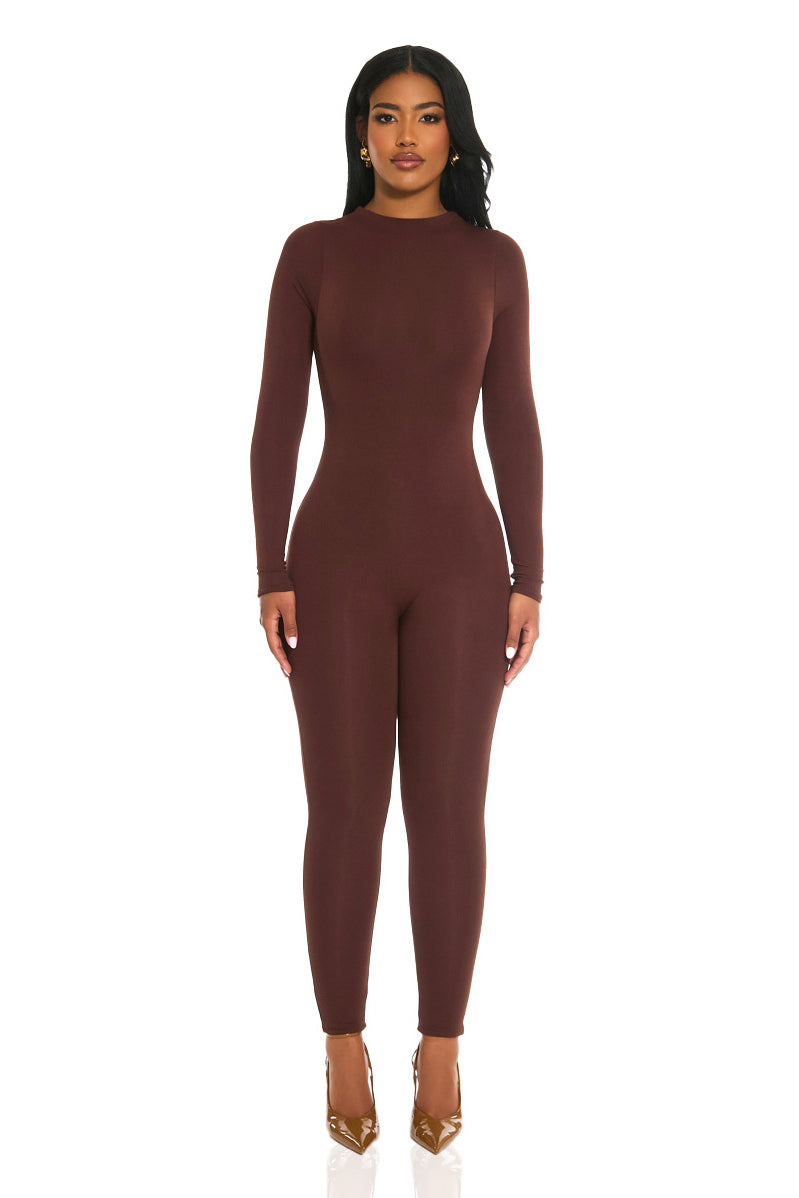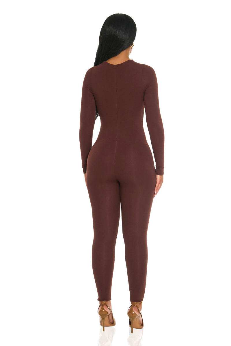 Sculpt Long Sleeve Jumpsuit (Brown)