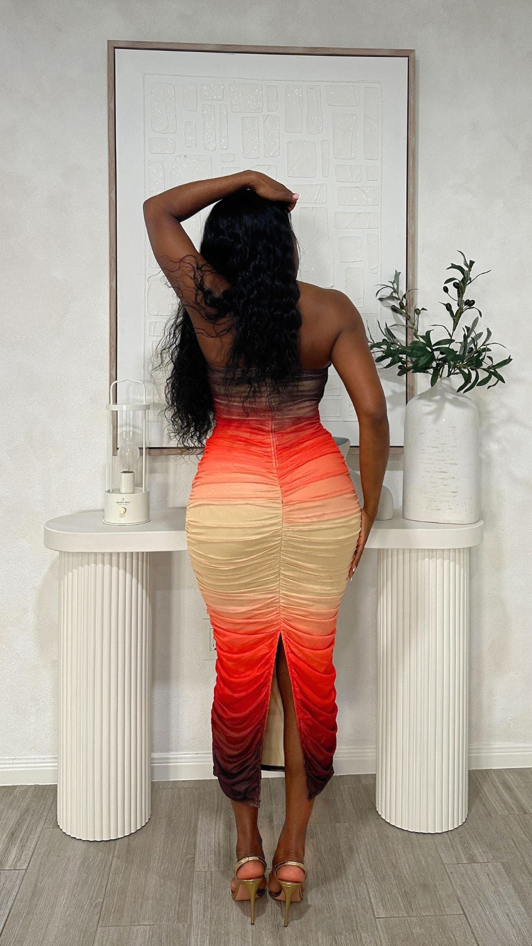 Turn heads in this Sunset Ombre Strapless Dress, designed with a flattering back slit and structured bust boning for a perfect fit. Fully lined for comfort, it’s your go-to choice for date nights or fun evenings out with friends. Embrace effortless style and playful vibes wherever you go!