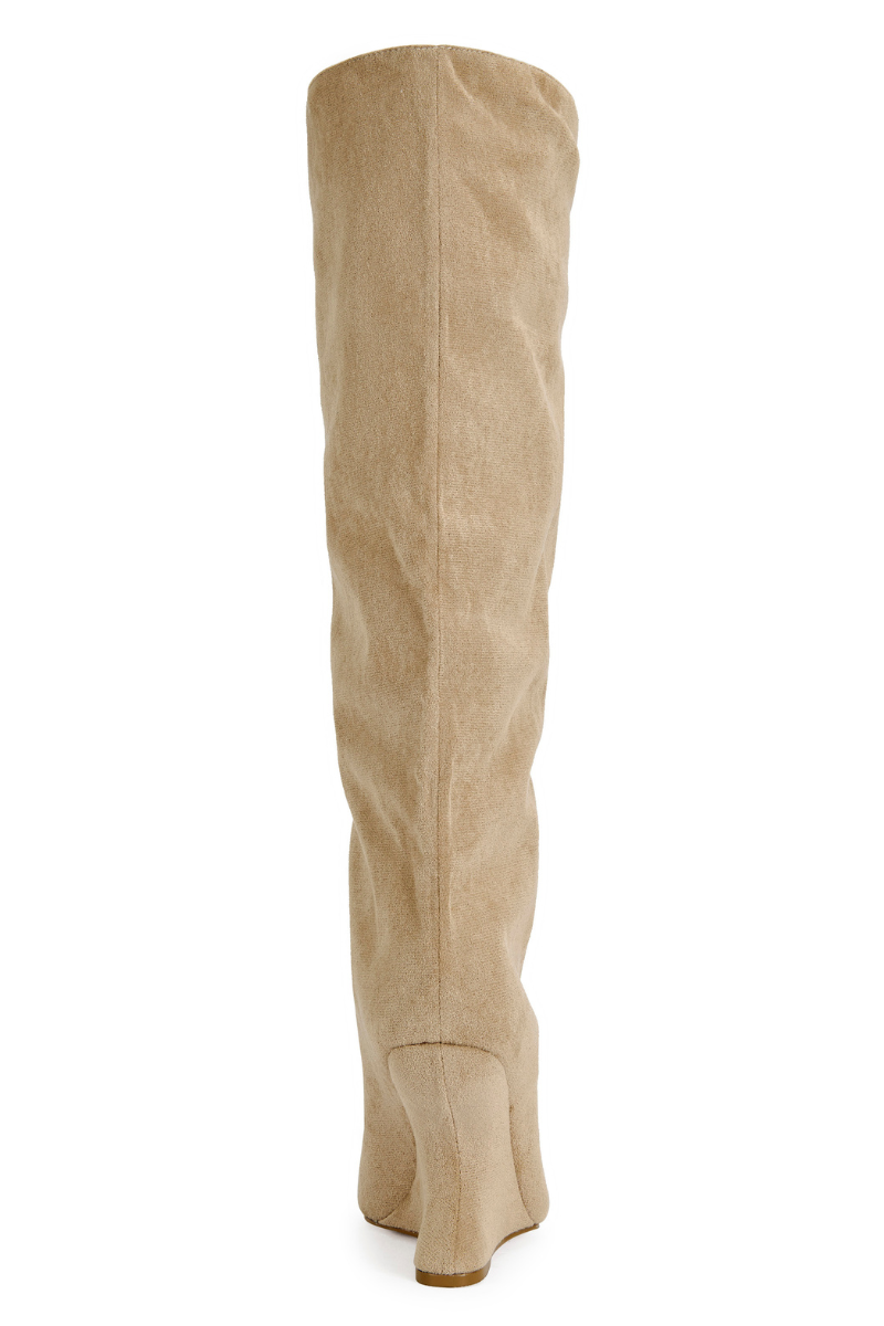 Viv Peep Toe Wedge Knee High Boots (Nude)