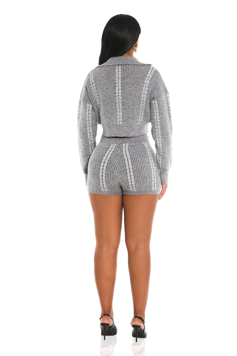 Embrace the perfect blend of coziness and style with the With Ease Cable Knit Short Set. This charming ensemble is designed for those who value comfort without compromising on fashion. The set includes a classic cable knit sweater and matching shorts, both crafted from soft, breathable fabric that provides warmth without feeling bulky. The sweater features a relaxed fit with ribbed cuffs and hem, adding a traditional touch to its contemporary design. The With Ease Cable Knit Sh42% ort Set can be effortlessly paired with sneakers for a laid-back vibe or dressed up with boots and accessories for an elevated look.